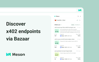 この拡張機能は、x402インターフェースのテストと呼び出しの機能も提供し、ブラウザから直接支払いを行い、X-Payment Headersを生成します。クリーンで開発者に優しいユーザーインターフェースを備えたMeson x402は、効率的なテストとデバッグを促進し、x402プロトコルを使用して実験したり構築したりする人にとって不可欠なツールです。